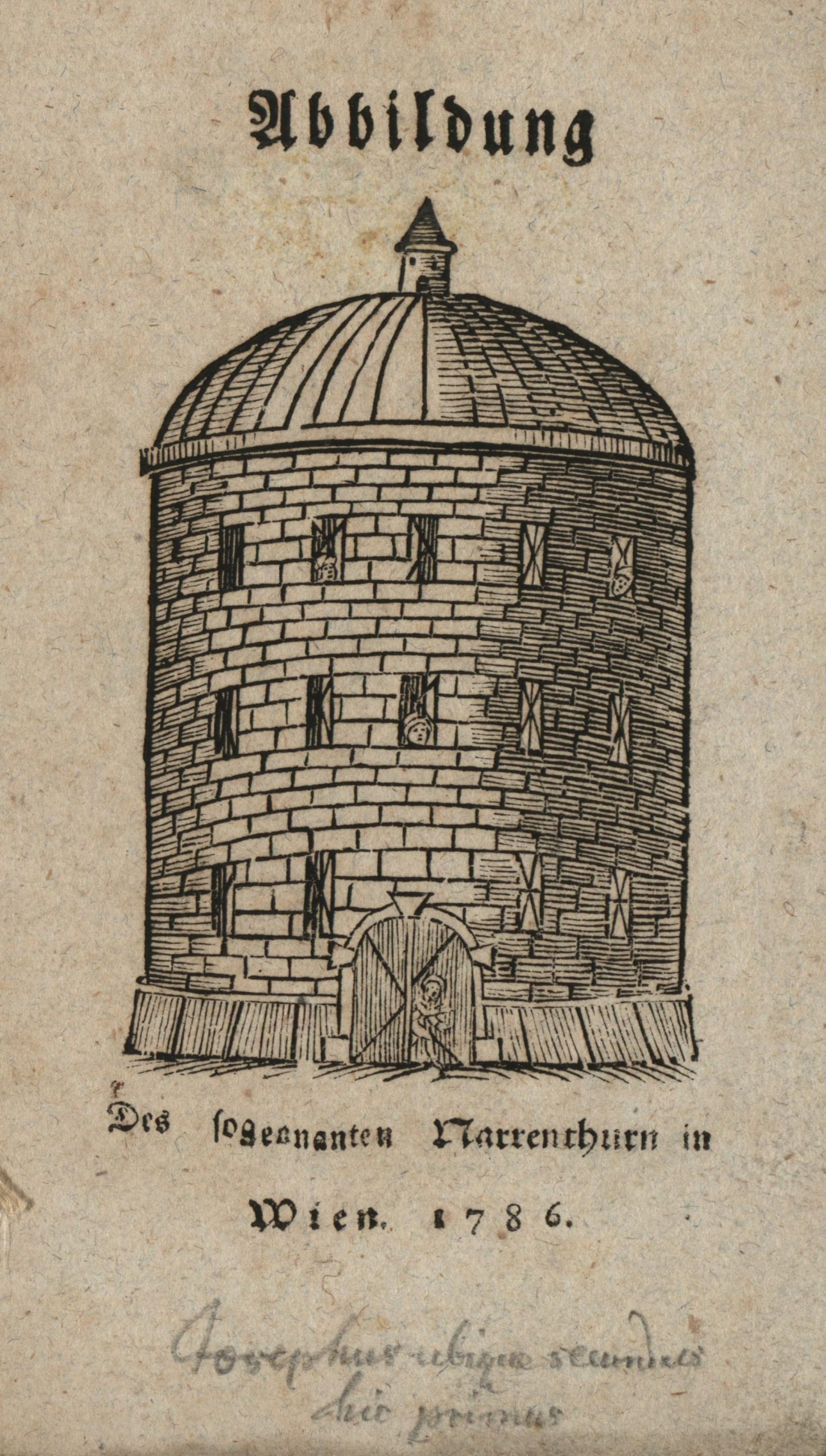 „Es ist unklar, ob es sich tatsächlich um einen Blitzableiter oder um einen Blitzfänger (zu ‚Heilungszwecken‘ der Insassen) handelte. Es sieht so aus, als ob man Blitze in der Gebäudemitte geradezu einfangen wollte, weil man sich heilende Wirkungen auf die (geistig und seelisch) Kranken erwartete („elektrodynamische Brachialtherapie“). Man unterschied zwischen ‚heilbaren‘ und ‚unheilbaren‘ Irren. Die Unheilbaren verblieben im Narrenturm – im Sinne des aufgeklärten Vernunft-Denkens (sic) hielt Josef der Zweite in einem Hofdekret von 1781 fest, wen er im Gugelhupf unterzubringen gedachte.“