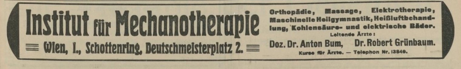 Institut für maschinelle Heilgymnastik (mechanotherapeutische und orthopädische Institut) des Dr. A. Bum in Wien