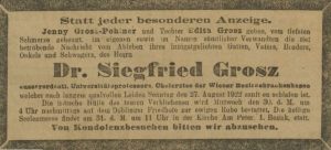 Grosz, Siegfried: Traueranzeige, Neue Freie Presse, 29.8.1922, S. 14.